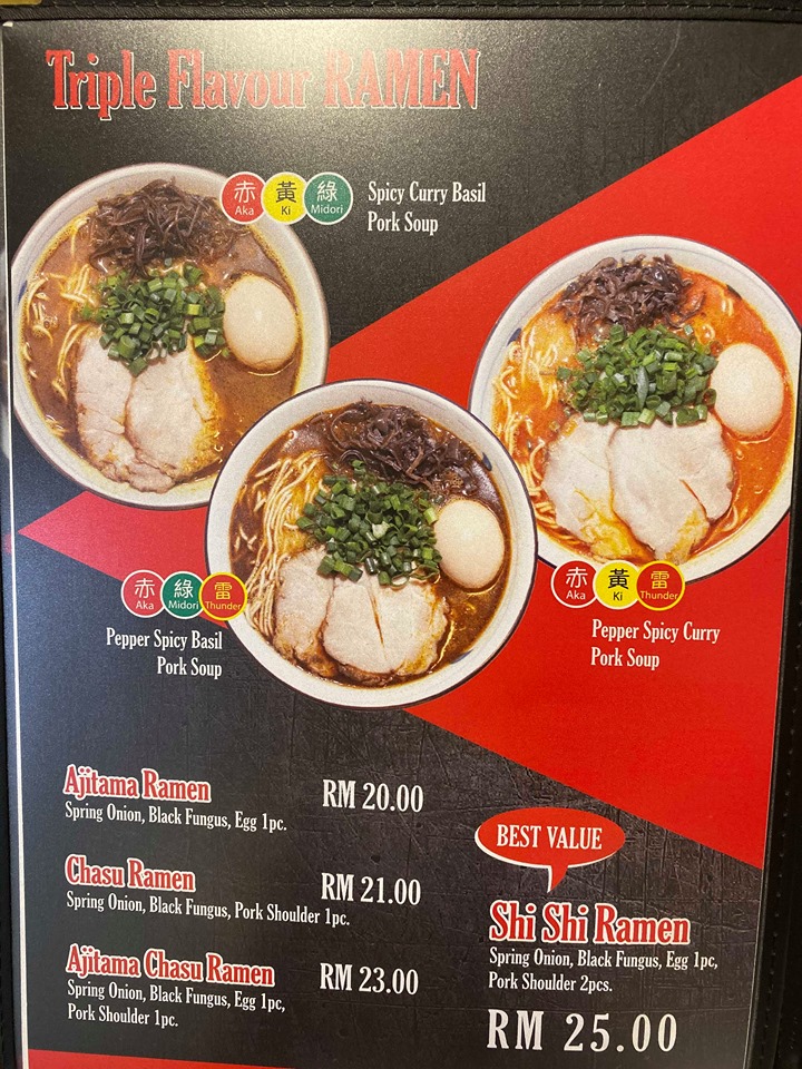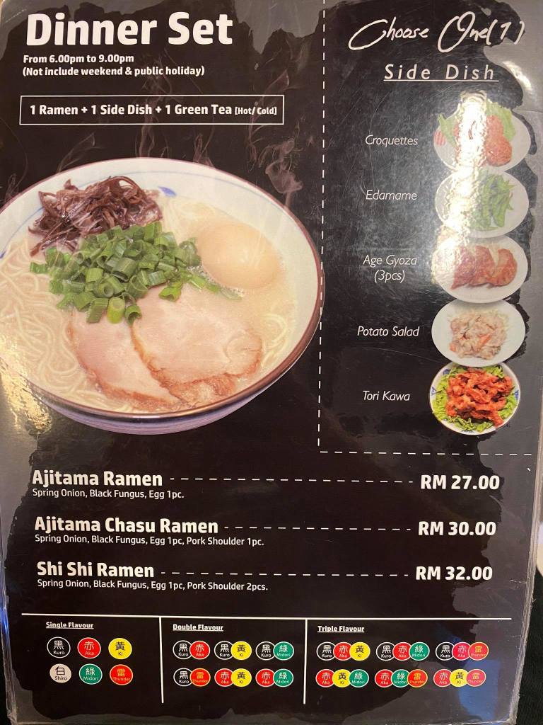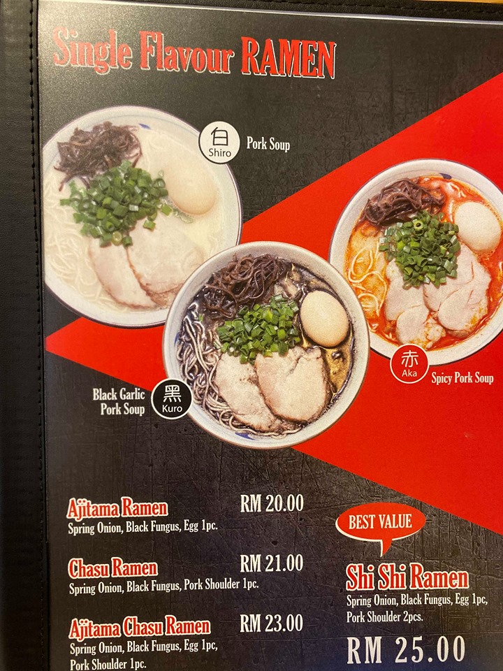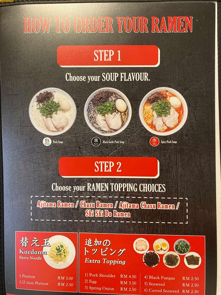 When it comes to ordering a Ramen, you will need to figure out what kind of soup base you prefer. There are multiples choices, single flavour, double flavour or triple flavour. Of course, having a single flavour gives you a robust soup taste. You totally can feel the difference if you order “Kuro” and “Kuro + Aka”.